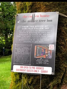 There was a fantastic sign posted to the tree at the entrance of the driveway that kindly warned visitors to keep their distance out of concern for Renesmee’s health and wanting to limit her exposure to Covid-19. The sign states that Jacob is very protective, and they do not want anyone to get hurt.