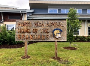 and Pacific Pizza (where they have amazing pizza. The restaurant is not officially in the book by name, but I’m sure when Charlie and Bella are noted as eating pizza, they would have gotten it here). Across and just off the main street, behind the motel where we stayed, is Forks High School. The buildings are new, but the original Home of the Spartans sign proudly sits outside the main entrance.