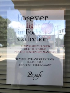There is one other little spot, though. It is out of business and hard to tell if it has just been hit hard by Covid-19 or if it’s a permanent closure. The Forks Coffee Shop from the book, where Bella and Charlie would have dined on that famous berry cobbler. I hope it makes a comeback. Fingers crossed for all future visitors.