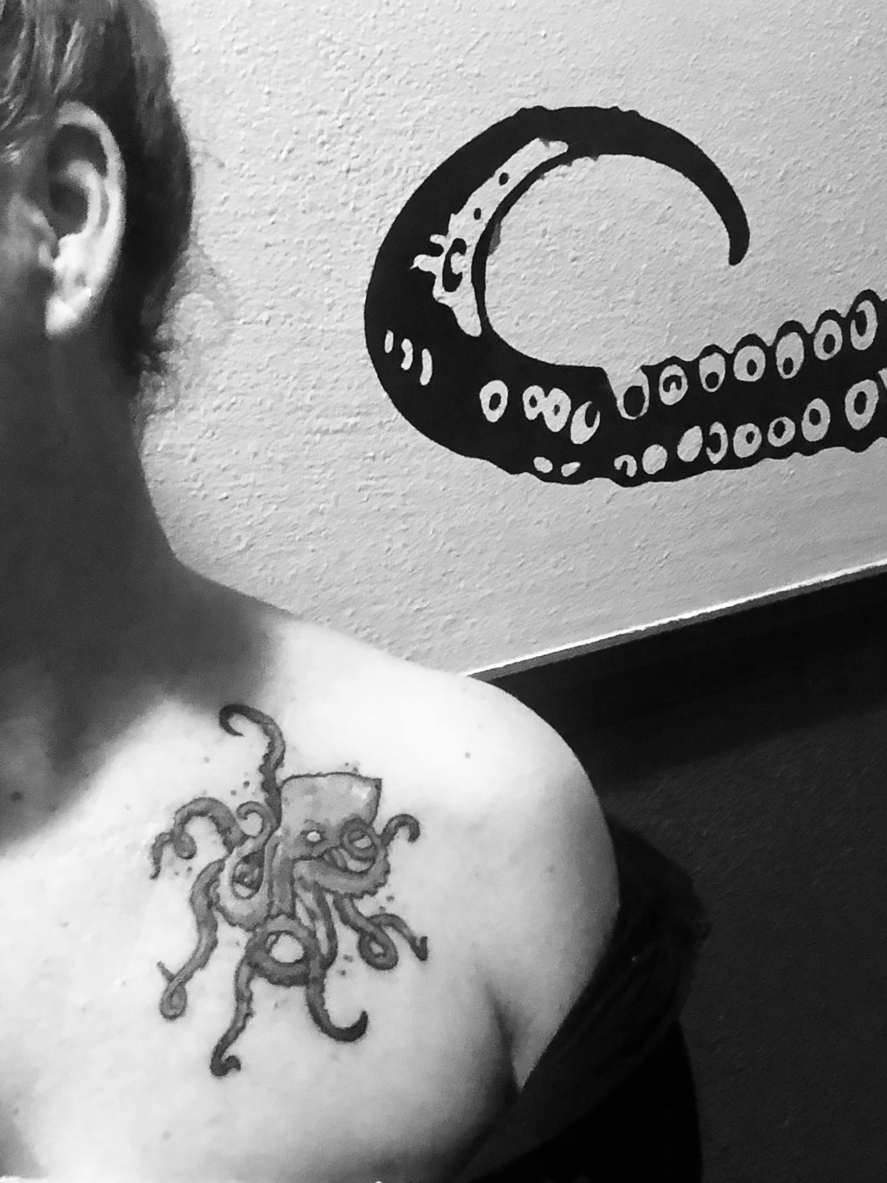 Want a totally rad octopus tattoo? See artist Jared Blake Lazar, designer of my art, and tattoo artist, Tashana at Cheyenne Mountain Tattoo Company, who did the inking. I still love it with all my heart.